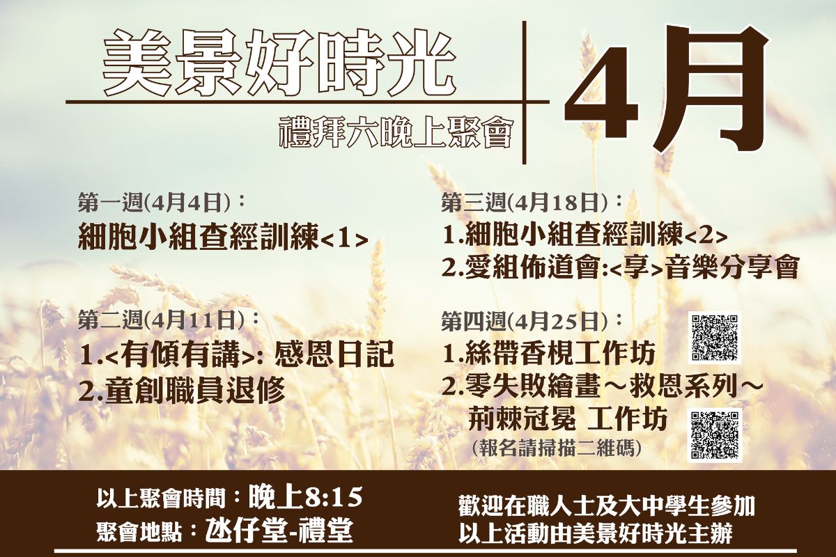 週六崇拜 逢禮拜六 下午6:00